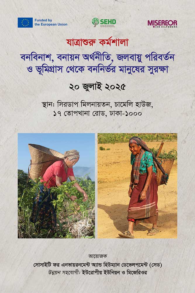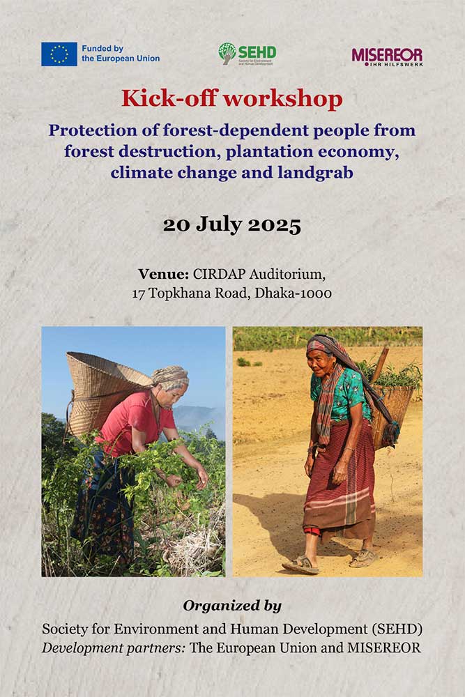 Kick-off workshop Jul 19, 2025 | SEHD News Protecting the forest communities from drastic forest loss, plantation economy, climate change and landgrab Date: 20 July 2025Venue: CIRDAP Auditorium, 17 Topkhana Road, Dhaka-1000